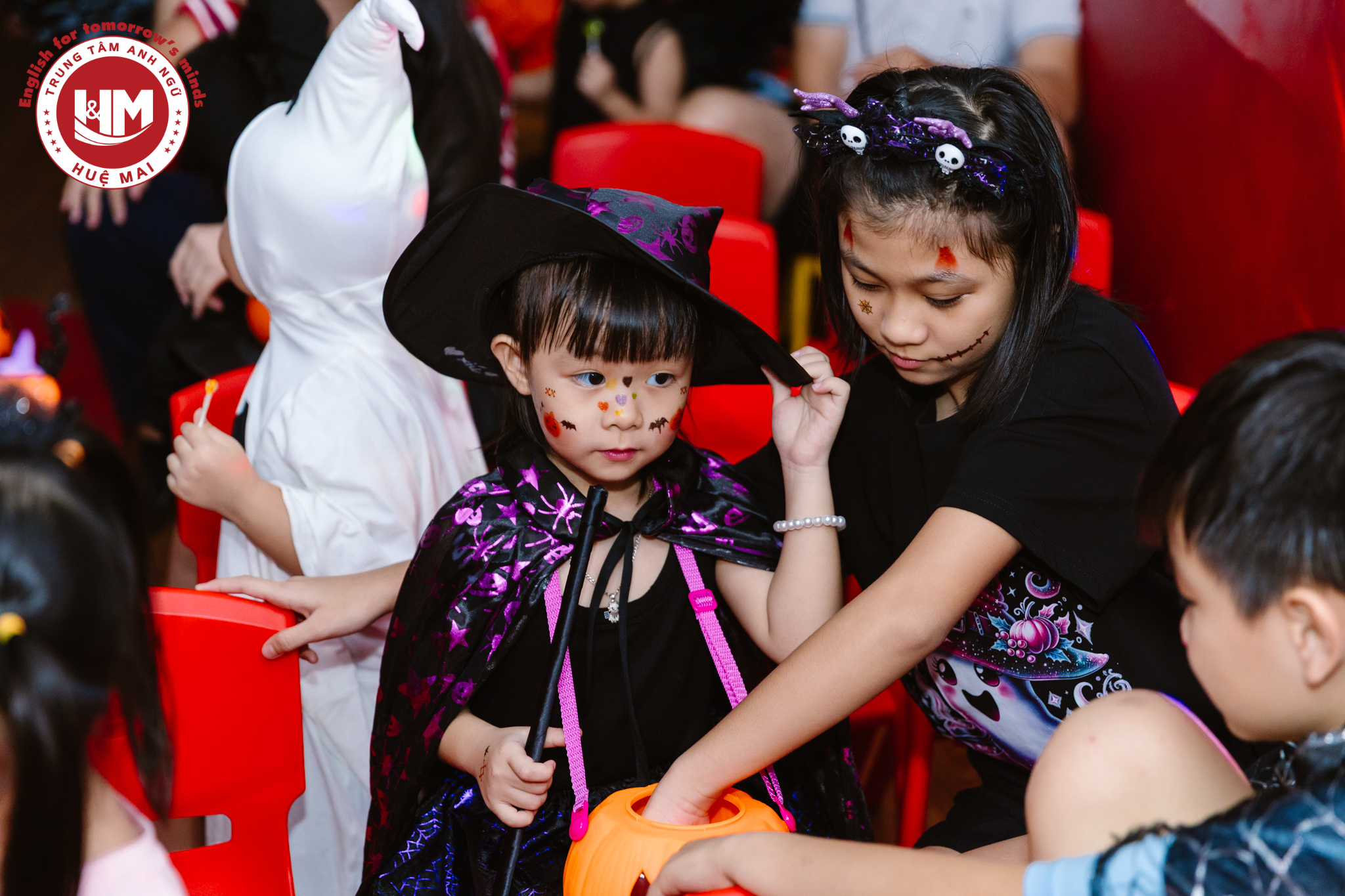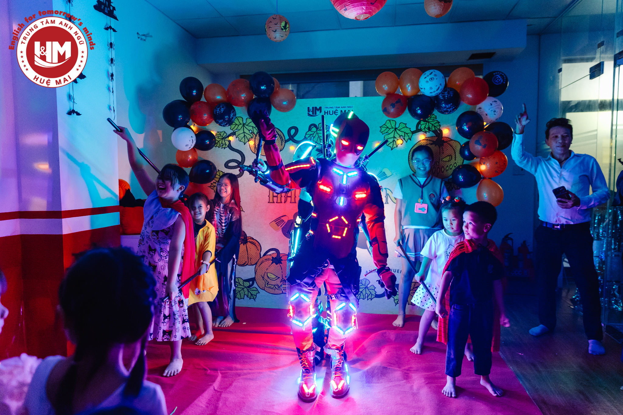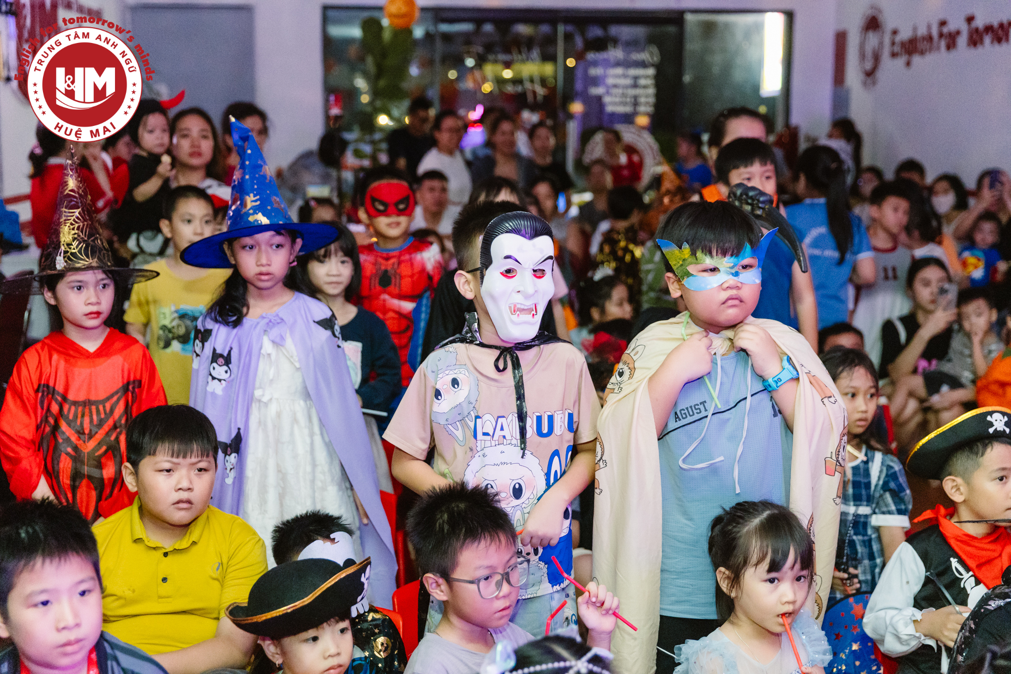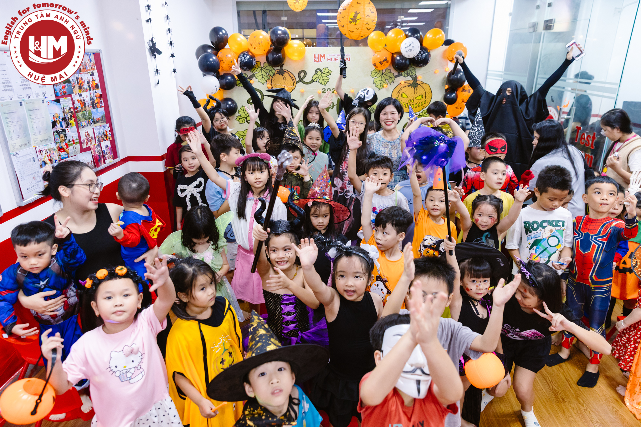 Không chỉ là ngày hội hóa trang, Halloween tại Anh ngữ Huệ Mai là khoảnh khắc để các con thỏa sức sáng tạo, thể hiện bản thân theo cách vui nhất! Không khí tại Huệ Mai bỗng biến thành “Vương quốc Halloween” – nơi những phù thủy nhỏ, siêu anh hùng và chú hề vui nhộn cùng nhau cười nói rộn ràng, tham gia trò chơi “Trick or Treat”, xem trình diễn Marvel, và say mê trước màn ảo thuật đầy kỳ bí. Mỗi tiếng cười, mỗi câu nói vang lên trong đêm hội đều là một bước tiến – để các con tự tin hơn và thêm gắn bó với bạn bè, thầy cô.