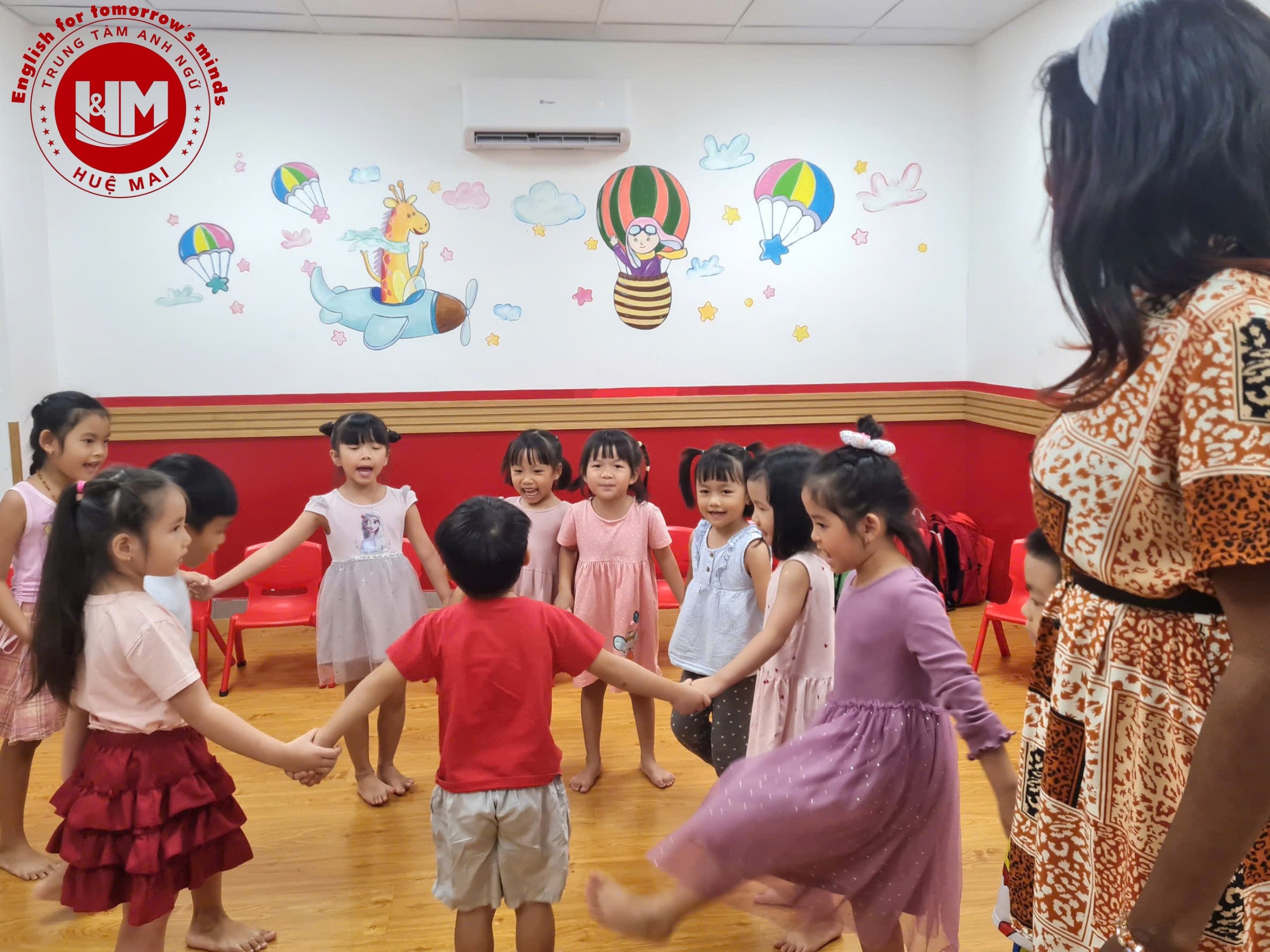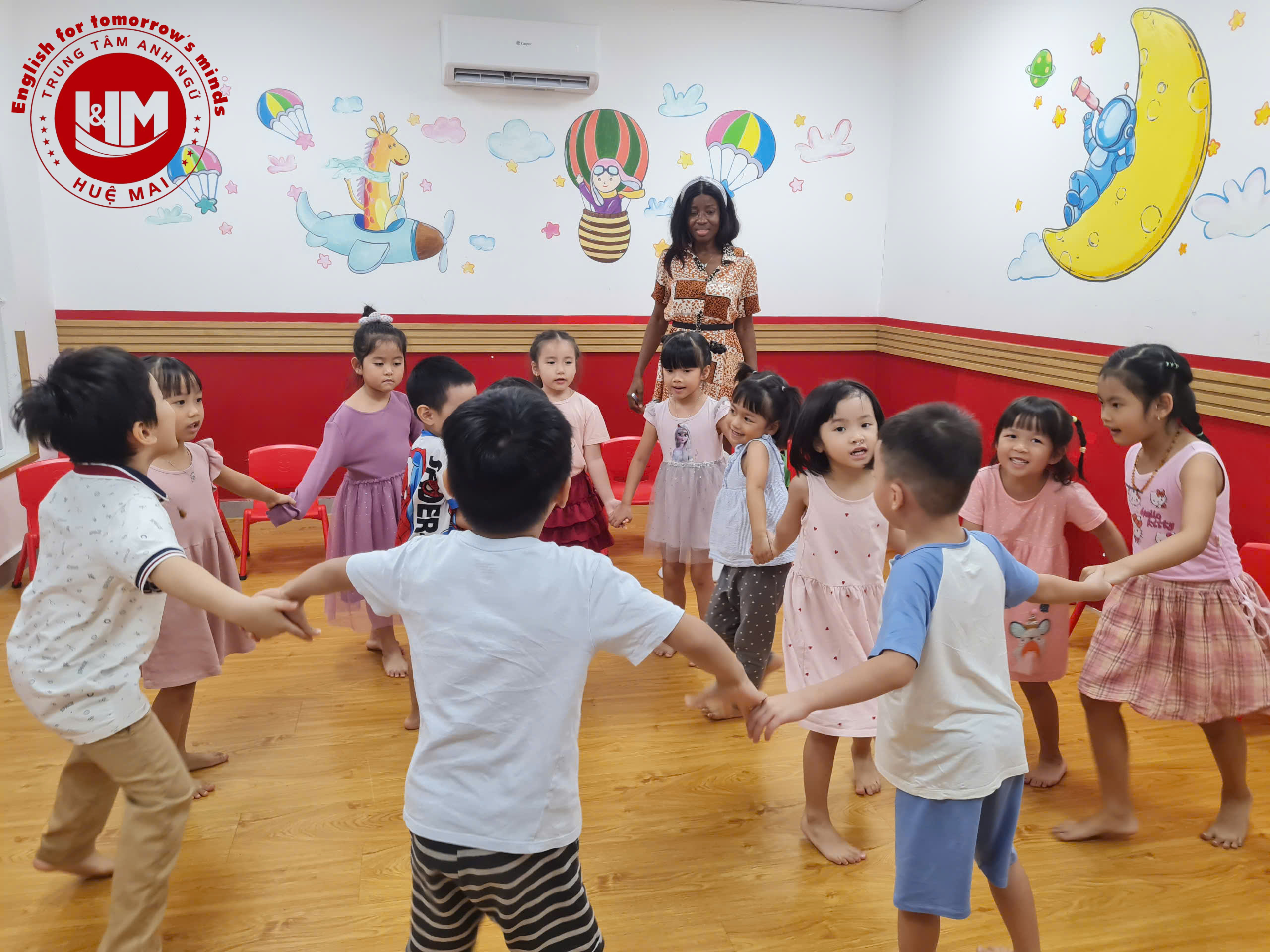 Các con học tiếng Anh qua hoạt động vận động, trò chơi và flashcard sinh động. Mỗi buổi học là một hành trình khám phá: con được tham gia, được trải nghiệm và tự nhiên ghi nhớ ngôn ngữ một cách nhẹ nhàng. Không chỉ dừng lại ở kiến thức, Huệ Mai hướng đến sự phát triển toàn diện. Các con trở nên tự tin hơn, linh hoạt hơn và vui vẻ hơn trong môi trường học tập tích cực.