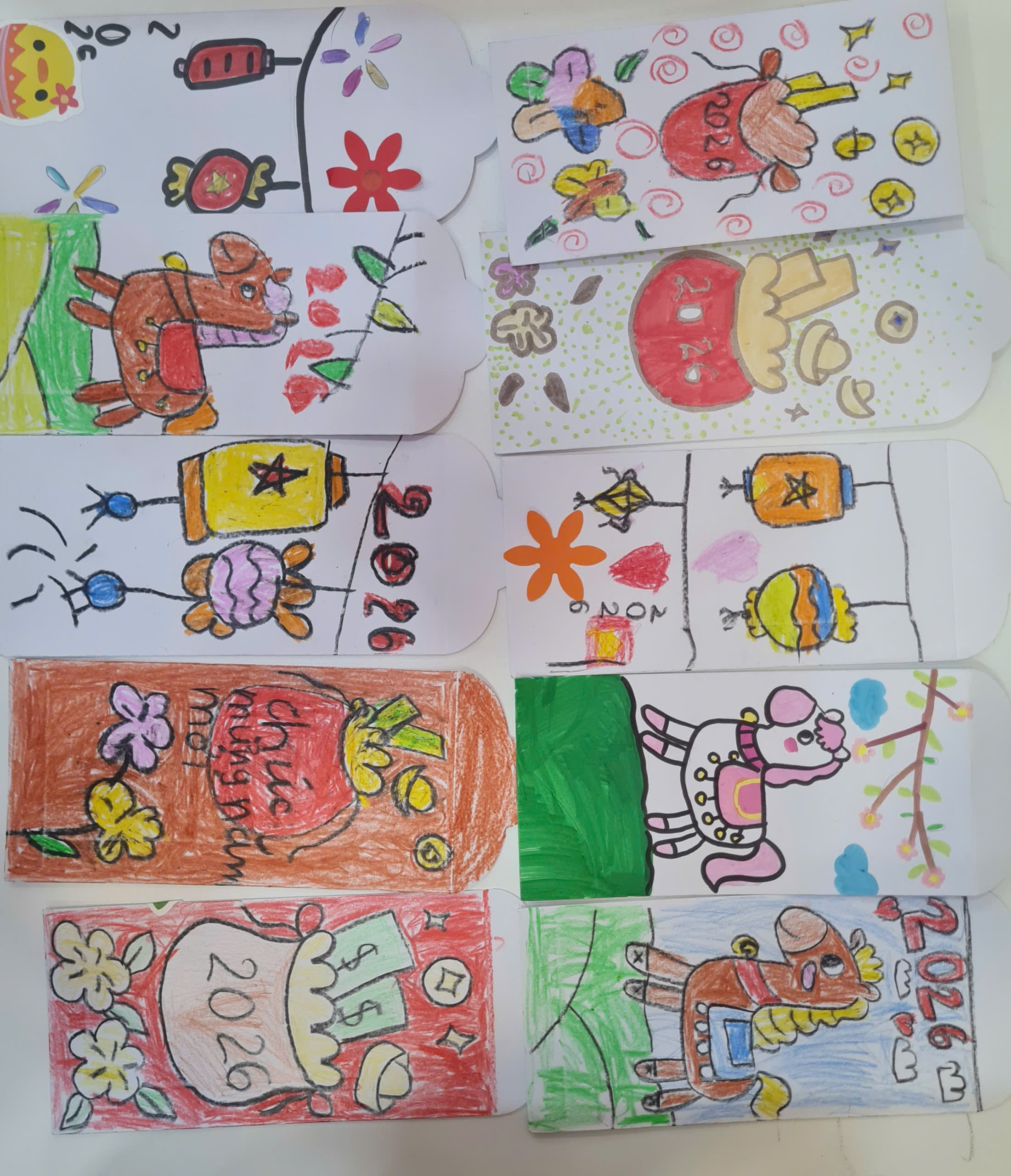 Trong không khí rộn ràng đón Tết, các học viên nhí tại Anh ngữ Huệ Mai đã cùng nhau tham gia hoạt động trang trí bao lì xì, một trải nghiệm vừa sáng tạo vừa giàu ý nghĩa. Qua từng nét vẽ, từng chi tiết trang trí nhỏ xinh, các con được tự do thể hiện cảm xúc, trí tưởng tượng và niềm háo hức chào đón mùa xuân mới.